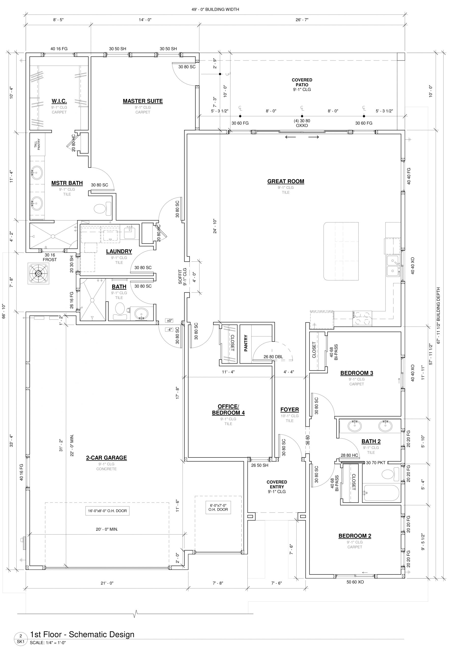 Architectural design and full construction documentation for a single-story Southwest-style residence in Arizona, constructed with concrete foundation, wood framing and traditional stucco exterior. A comprehensive permit-ready drawing set was produced to meet all local codes and municipal requirements. The design captured authentic regional character through open floor plans, deep overhangs and seamless indoor-outdoor flow tailored to the desert environment.