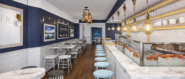 Interior design and 3D visualization for a new oyster bar and restaurant in Philadelphia, PA, with perspectives from the front door highlighting the central bar and dramatic oyster display as… read more →